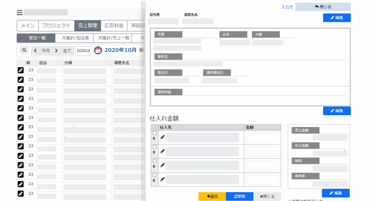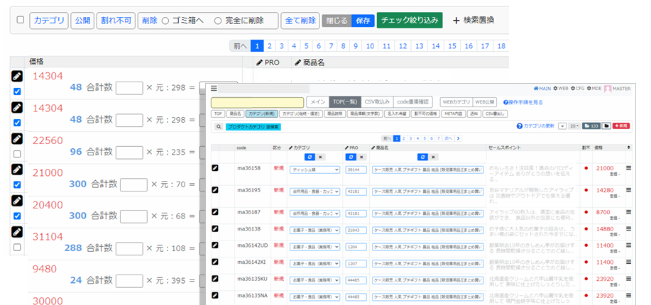 JQueryプラグイン JSPANELを導入してデータ一覧から複数のデータをAJAX形式のデータを同時編集ができるようにしました。