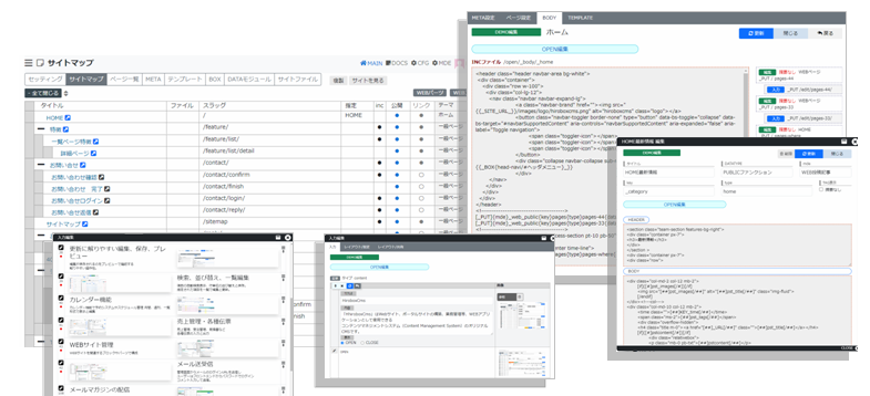 「HhiroboxCms」はWebサイト、ポータルサイトの構築、業務管理等、WEBアプリケーションとして使用できる コンテンツマネジメントシステム(Content Management System)のオリジナルCMSです。